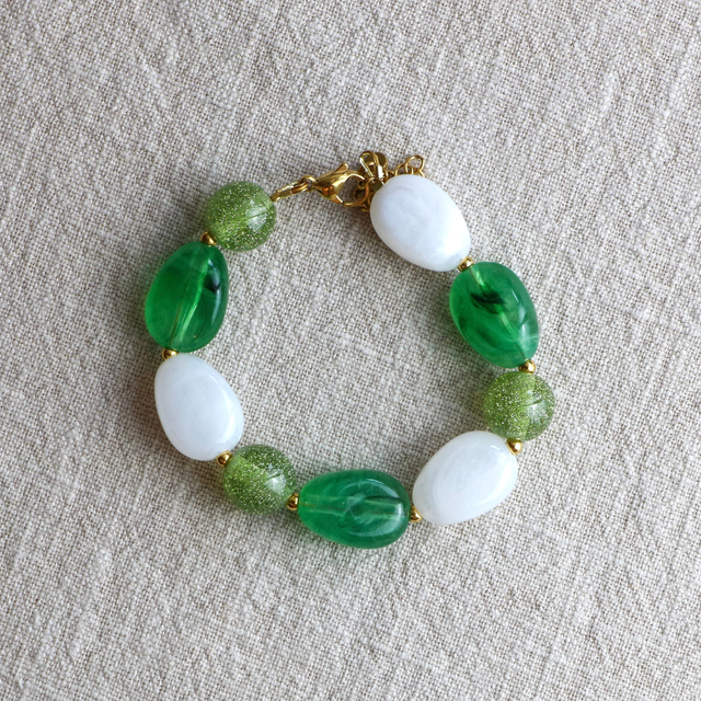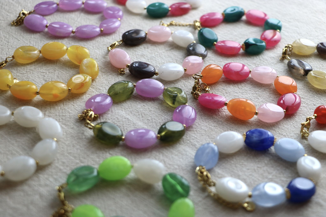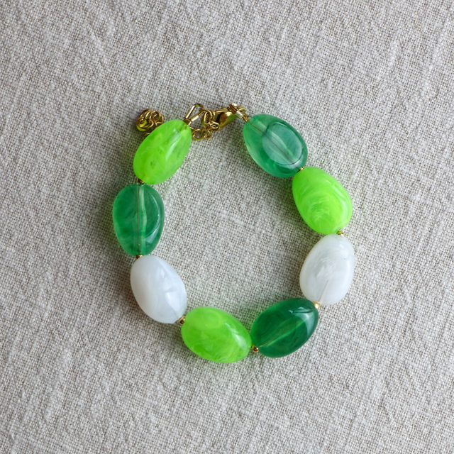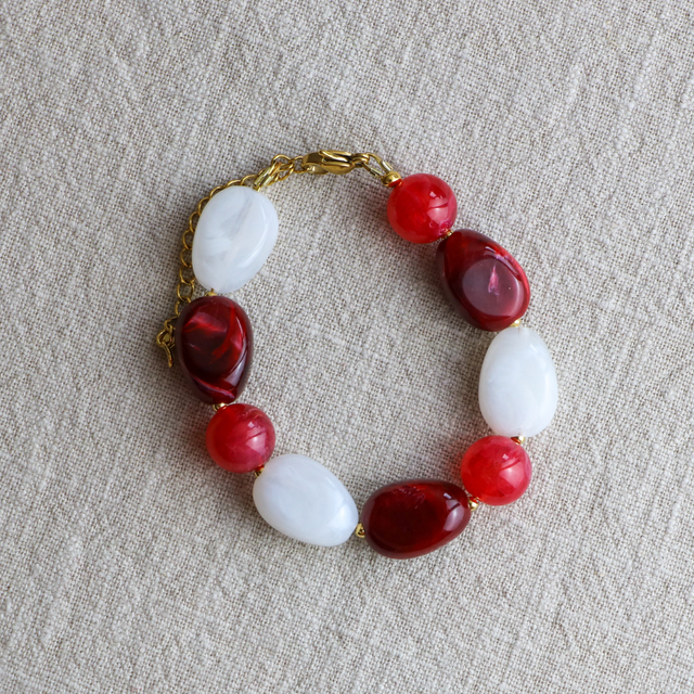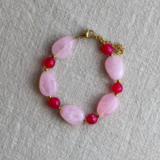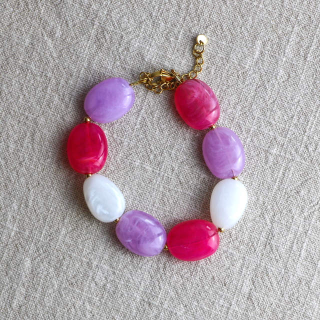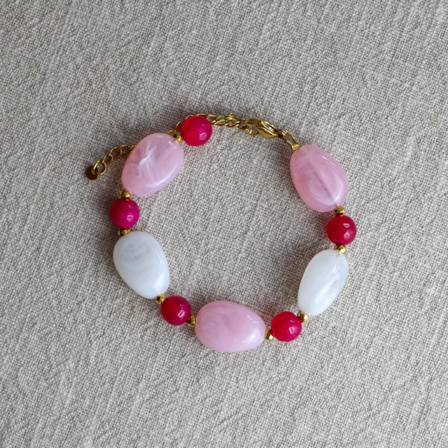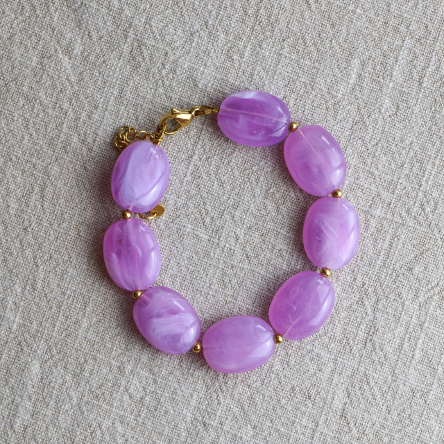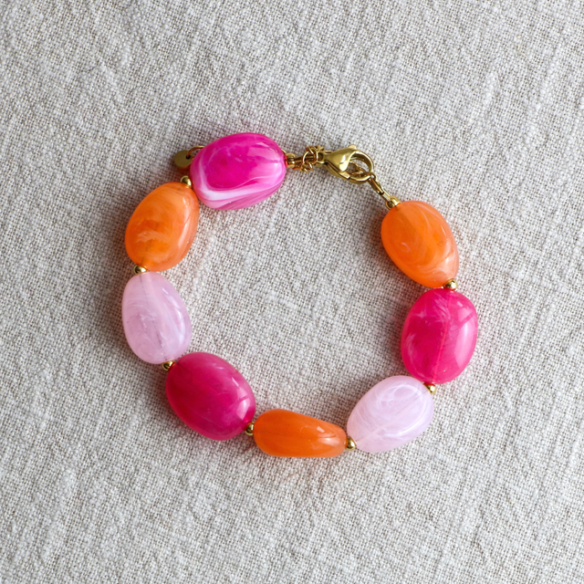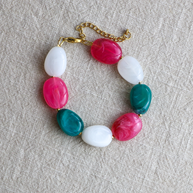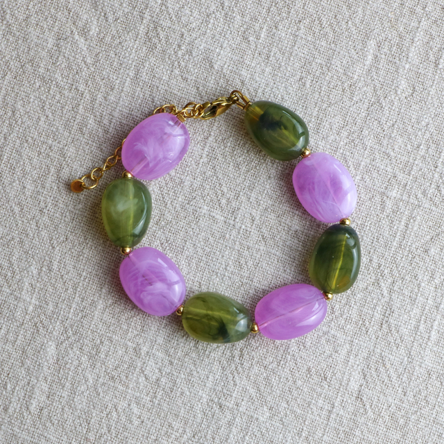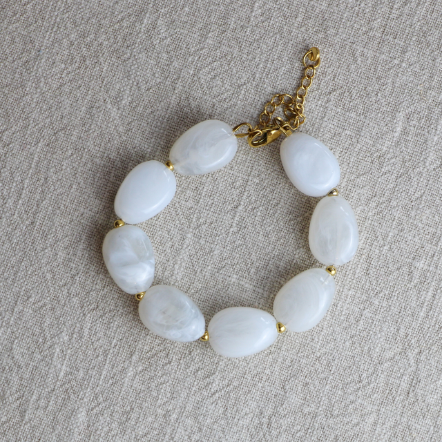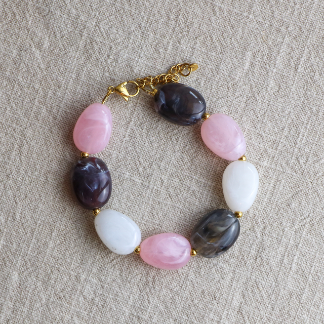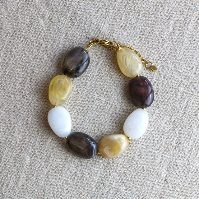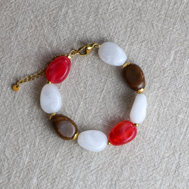 Bracelet vintage en perles acryliques et pièces dorées en acier inoxydable, pensé pour apporter une touche élégante et sophistiquée à toutes vos tenues.