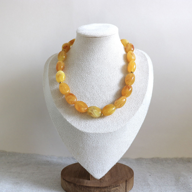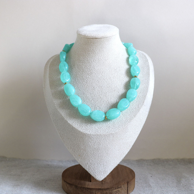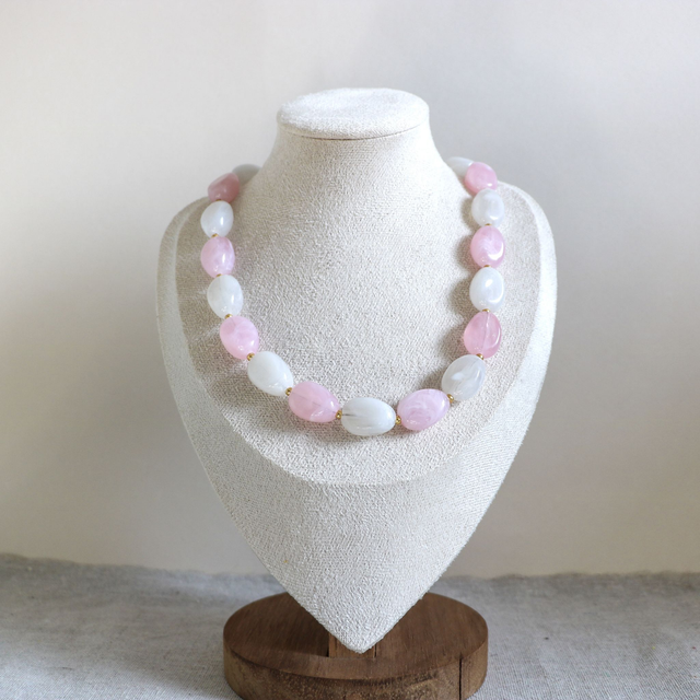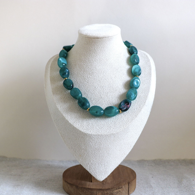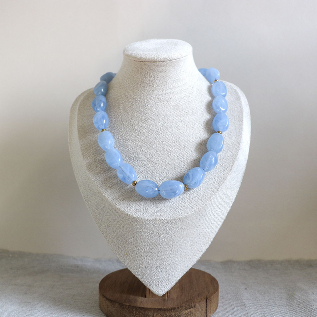 Collier Brigitte fait main avec des perles acryliques et pièces en acier inoxydable.
